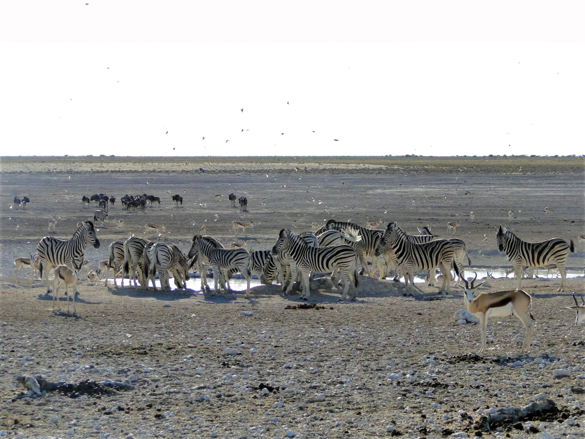 A experiência de visitar o Etosha é indescritível. Você pode dar a sorte de ver quase todos os animais e pode não dar tanta sorte assim. Mas é muito provável que você consiga observar a maior parte das espécies do parque. E não são poucas. Nós vimos leões, rinocerontes, girafas, elefantes, zebras, hienas, gnus e vários outros bichos.