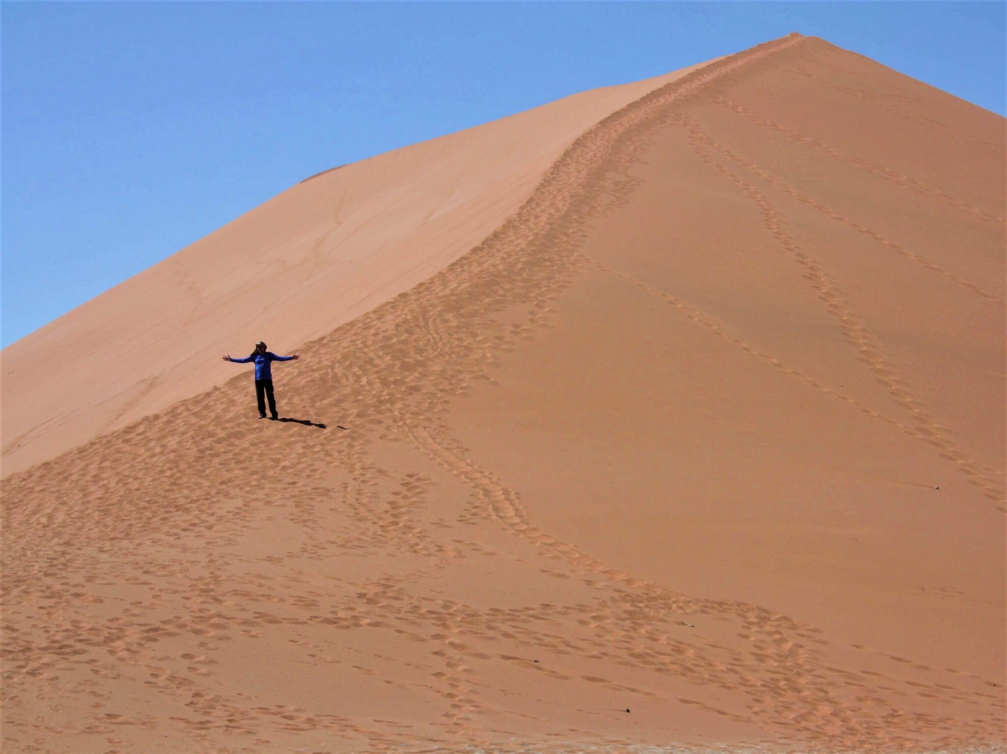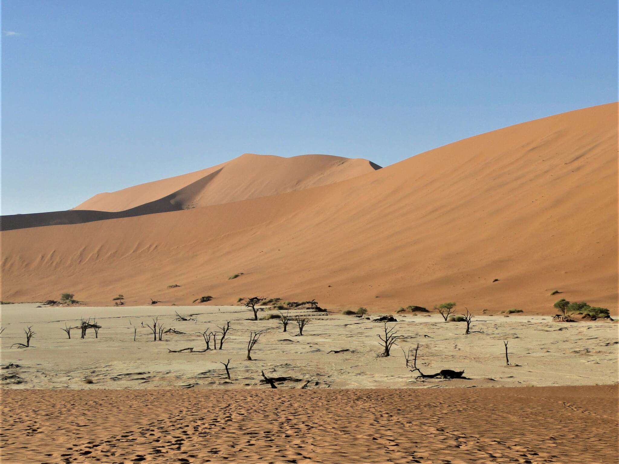 Sossusvlei, já tem um nome enigmático. “Sossus” em Nama (uma das línguas africanas locais) significa “fim da linha”. E “Vlei” em Africâner (língua germânica presente no sul da África) significa “pântano”.