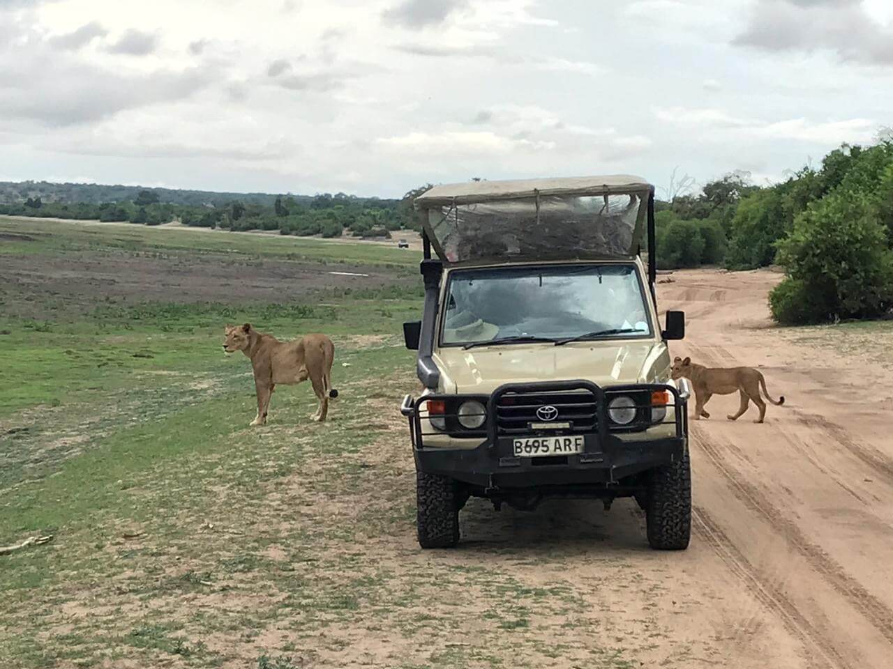 Depois de um almoço no “restaurante-base”, partimos para o segundo tempo. O safári em carro aberto anda um grande percurso. E, logo no início, tivemos a grata surpresa de darmos de cara com o rei da selva, uma família de leoas que estavam passeando com seus filhotes e caçando antílopes.