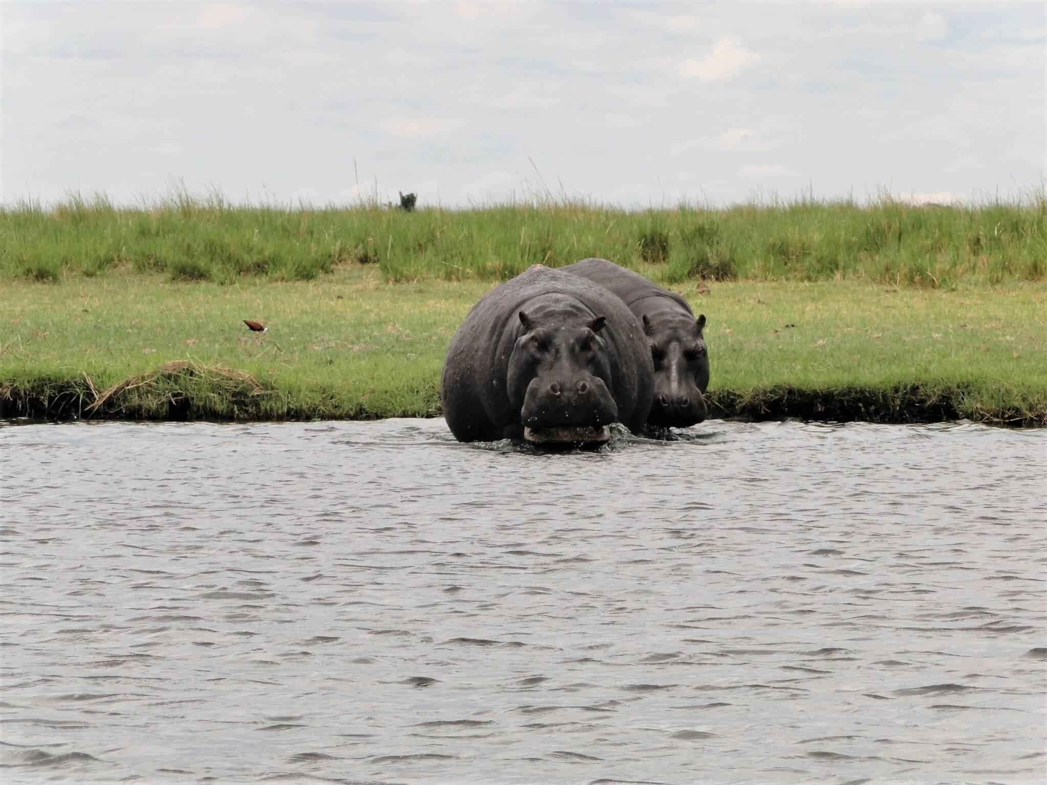A parte mais tensa pra gente foi navegar perto dos hipopótamos, sabendo que são os animais que mais matam no mundo as pessoas que navegam inadvertidamente pelos rios africanos. Mas sabíamos que estávamos bem seguros com uma empresa legalizada contratada para explorar este tipo de turismo com muita responsabilidade.