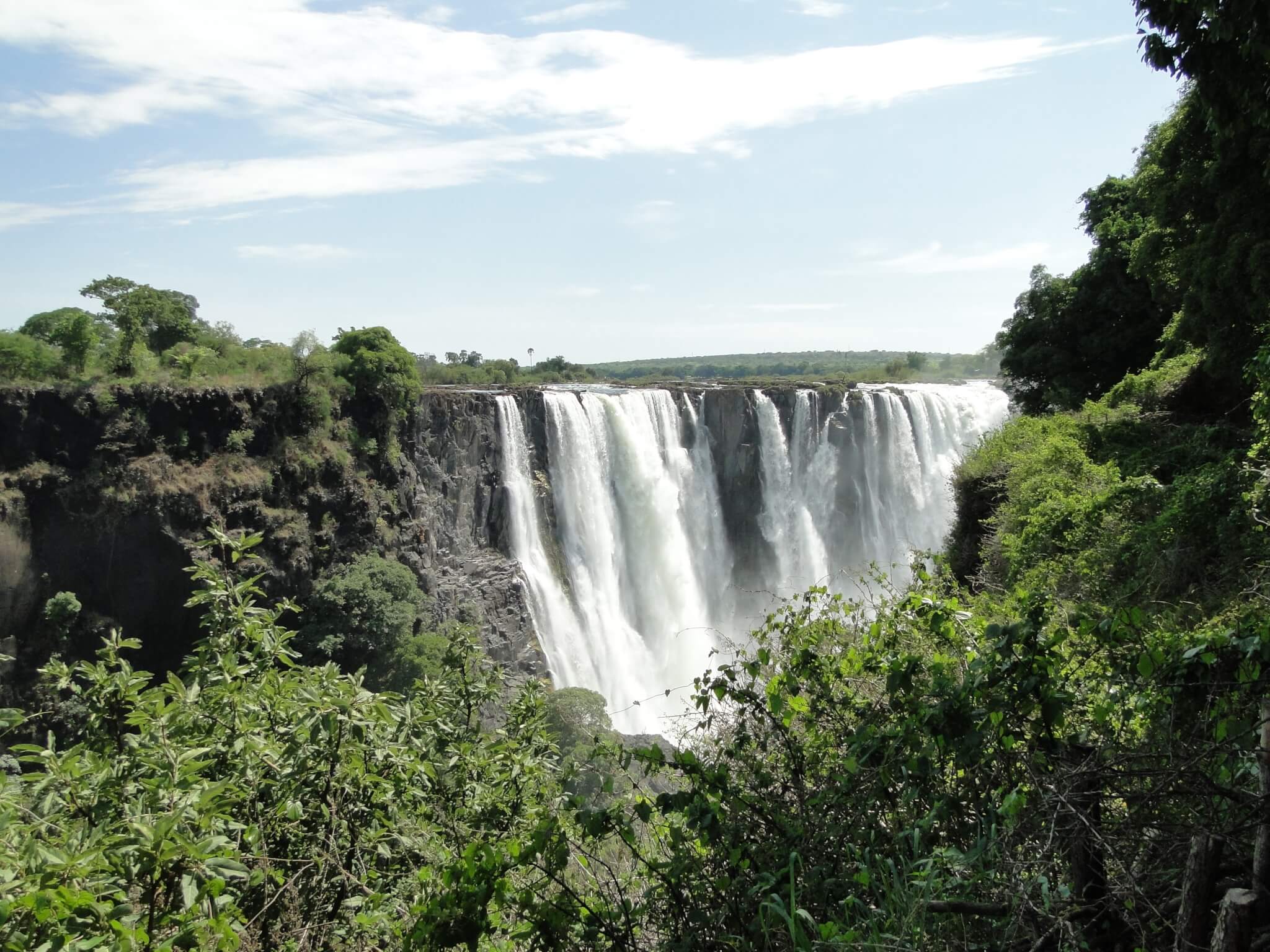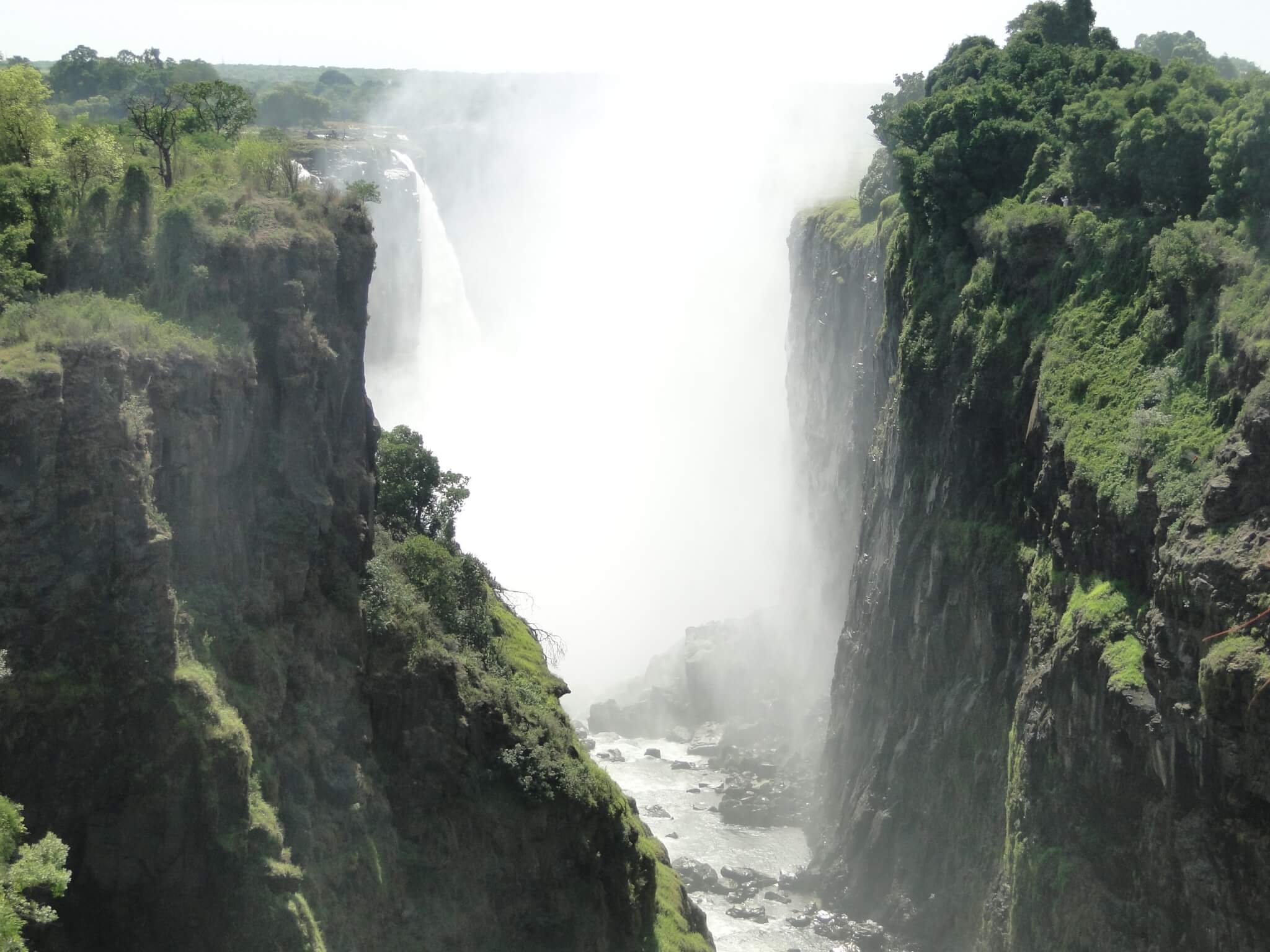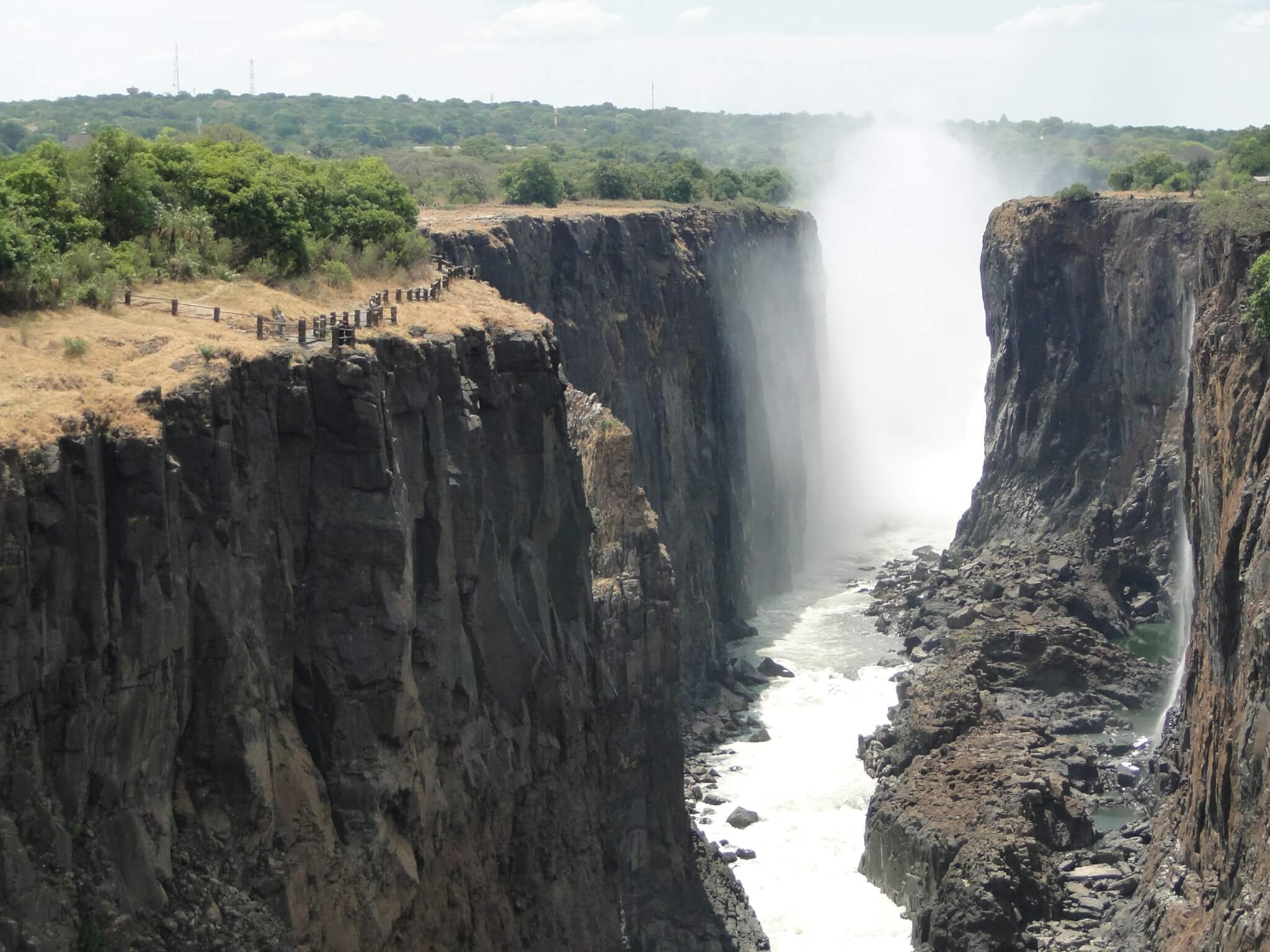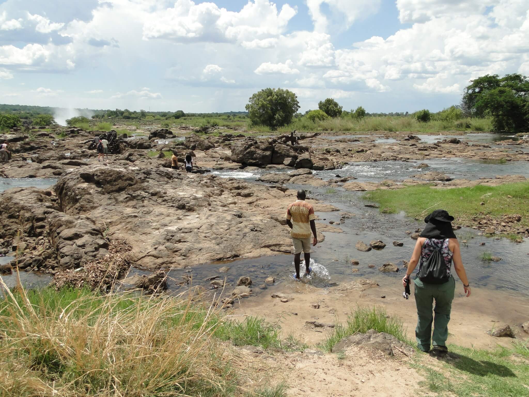 Dependendo da época, há mais água de um lado que de outro. Pegamos um táxi até a fronteira e a entrada do Parque Victoria Falls. Começamos nosso passeio pegando uma fila generosa para entrar no território do Zimbábue.