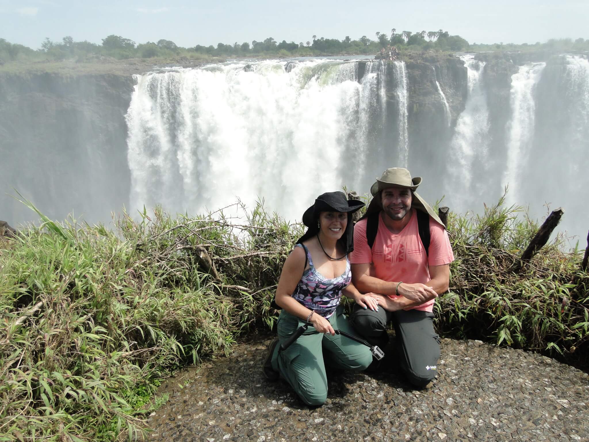 A nossa viagem da África ficou ainda mais emocionante quando resolvemos botar em nosso roteiro a visita às cataratas de Victoria Falls. Elas sempre são retratadas com um dos lugares que deveríamos conhecer antes de morrer e não é para menos. O gigante parque de Victoria Falls abriga a fronteira entre Zâmbia e Zimbábue e é cercada por uma natureza majestosa.