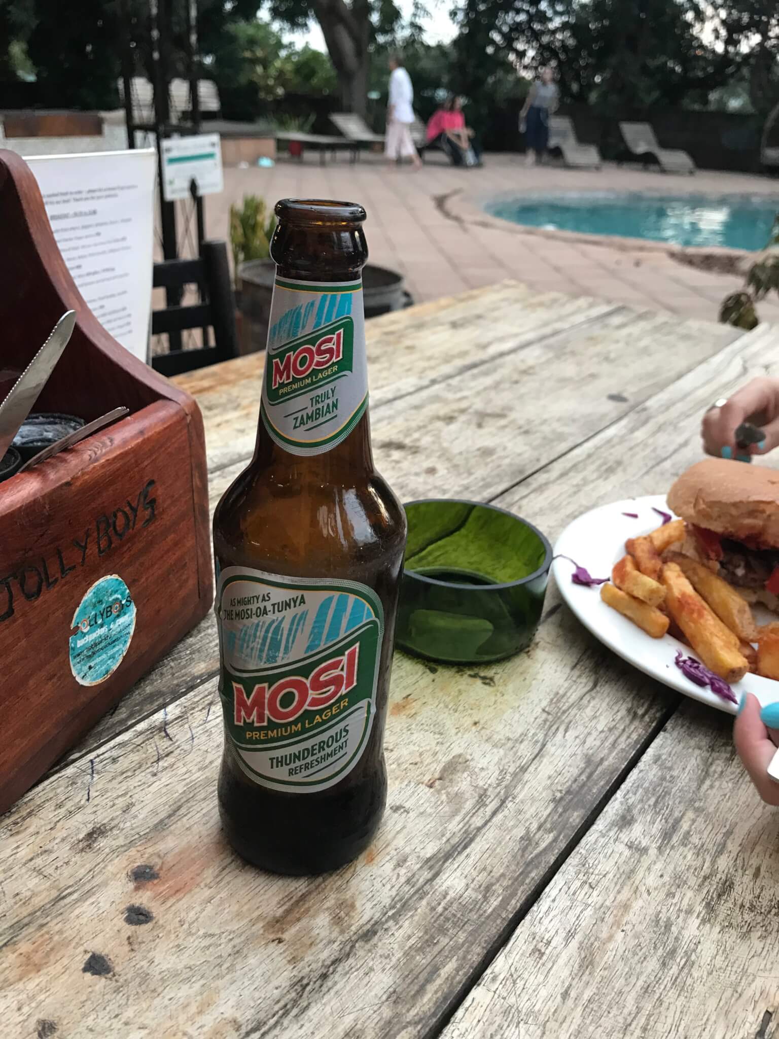 Nós ficamos no Jolly Backpackers. Um hostel que nós consideramos muito bom. Com café da manhã e restaurante disponível para almoço e jantar por um preço honesto. Eles têm parcerias com empresas que fazem passeios incríveis pela Zâmbia, Zimbábue e tá por Botsuana, roteiro que eu conto em outra postagem. O hotel é perto também de um centro comercial, onde há um supermercado.