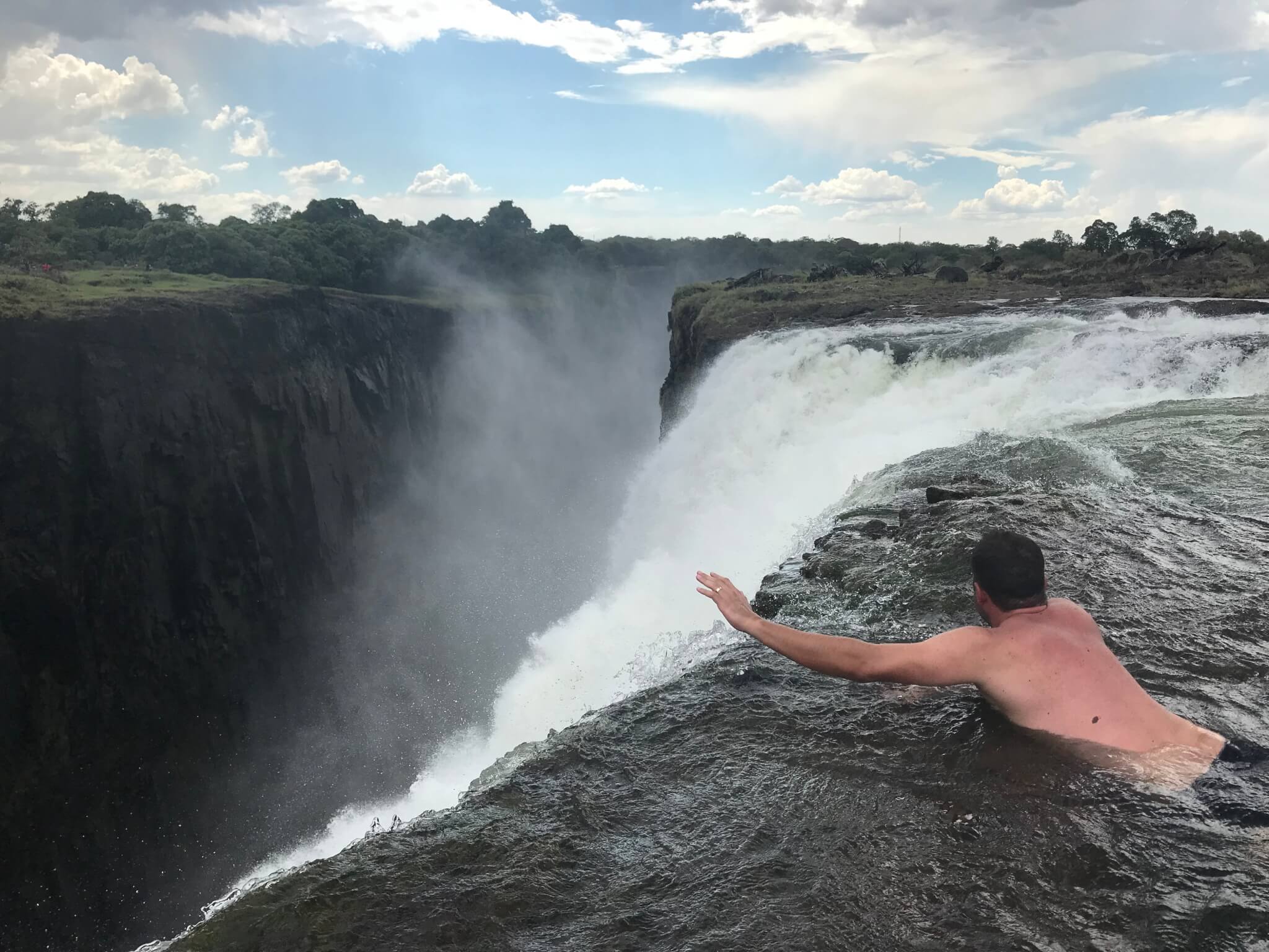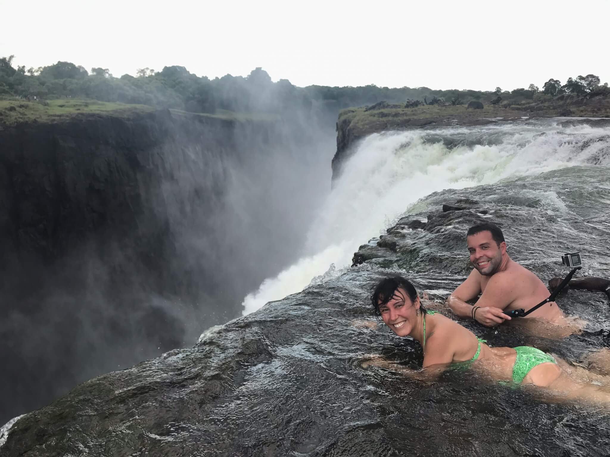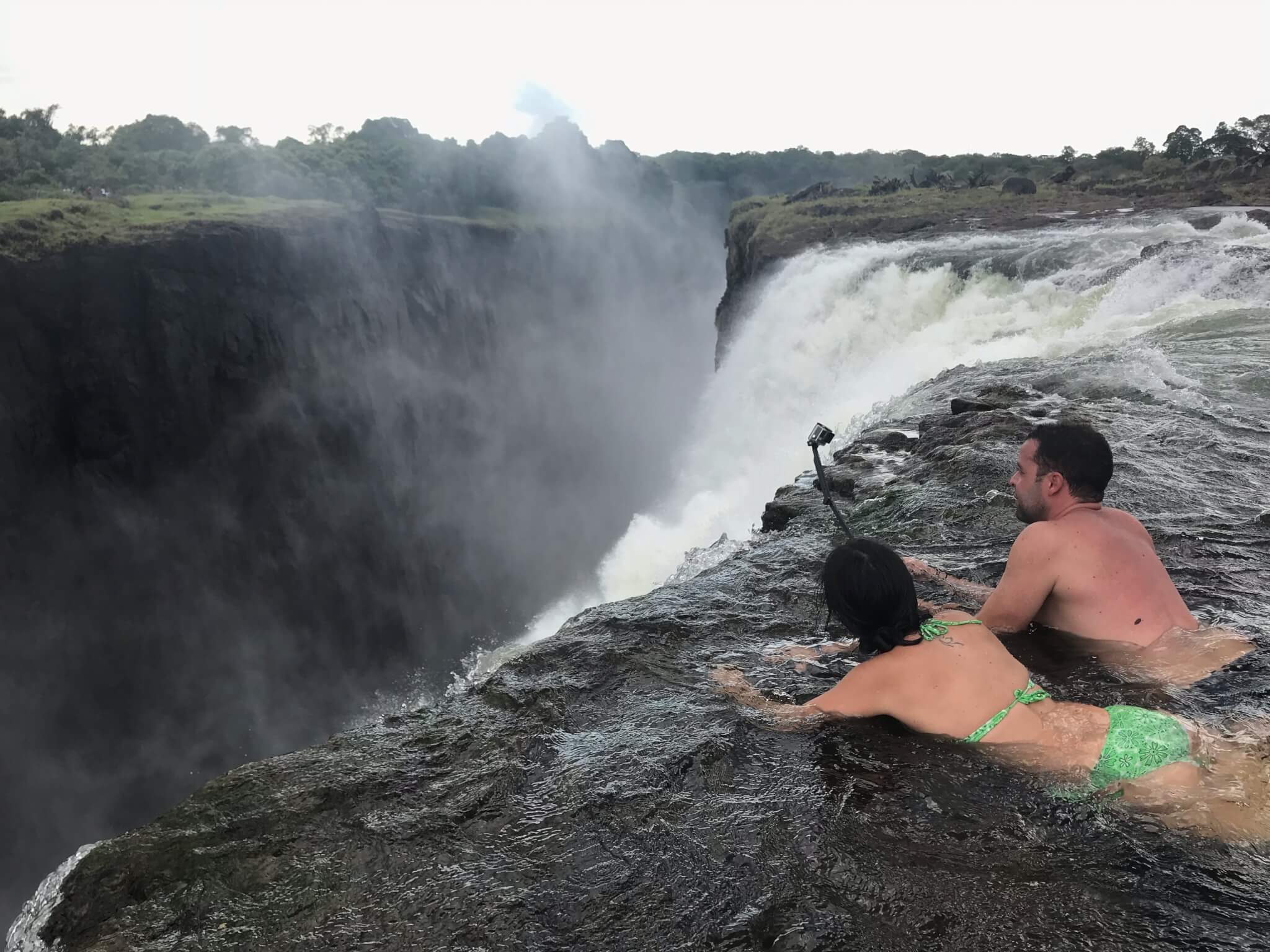 De longe o carro-chefe do lado Zambiano da Victoria Falls é o Devil’s Pool. Trata-se de uma piscina infinita natural que se forma entre uma das quedas, tendo vista para as gigantes cachoeiras que temos do lado do Zimbábue.